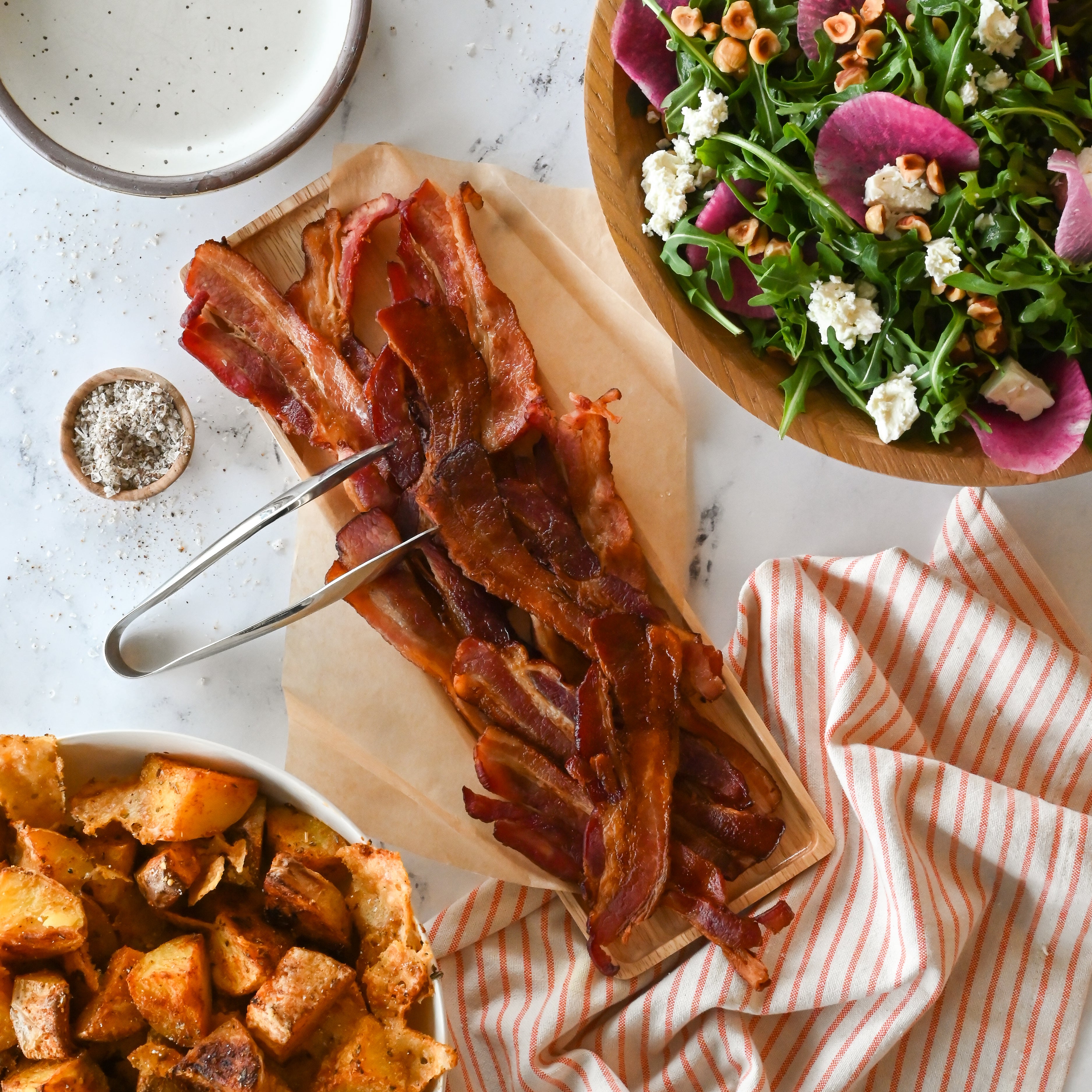 Everything’s better with bacon. Our premium thick cut, small-batch bacon is naturally hardwood-smoked and ready to cook, making it the ultimate savory brunch companion!